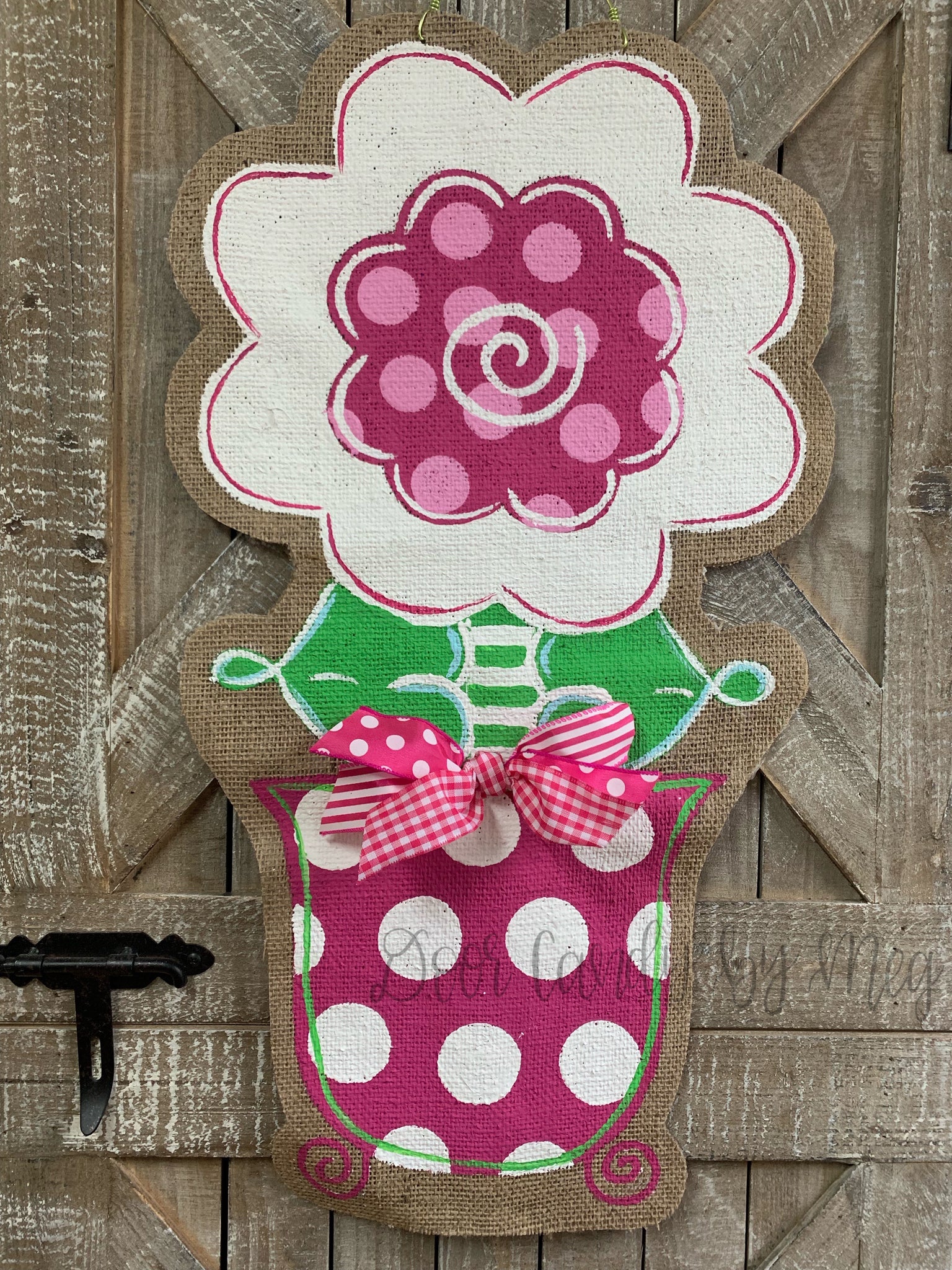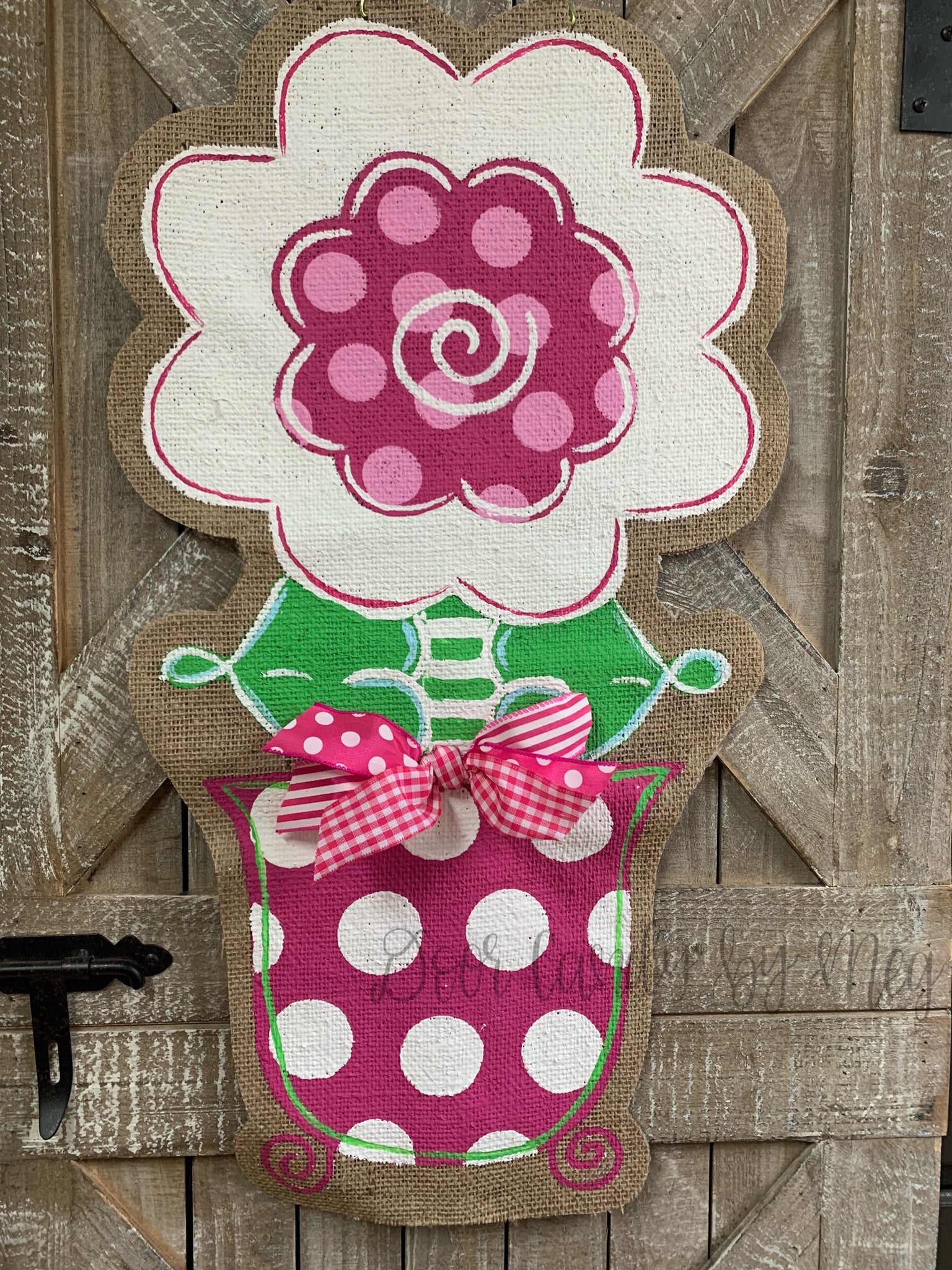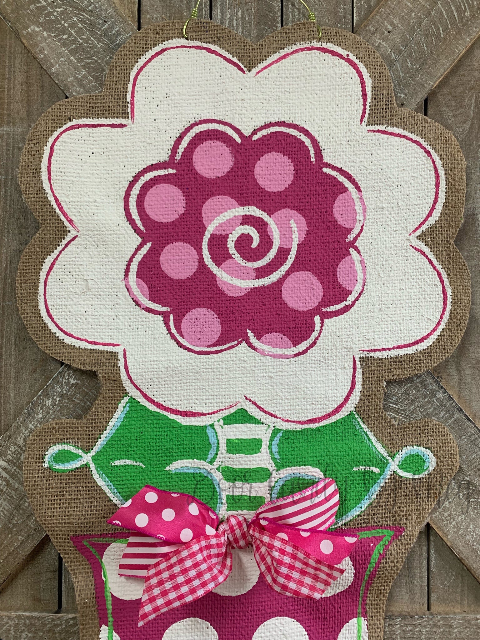 burlap flower door hanger, flower door hanger painted, front door flower hanger, flower door hanging, spring door hangers